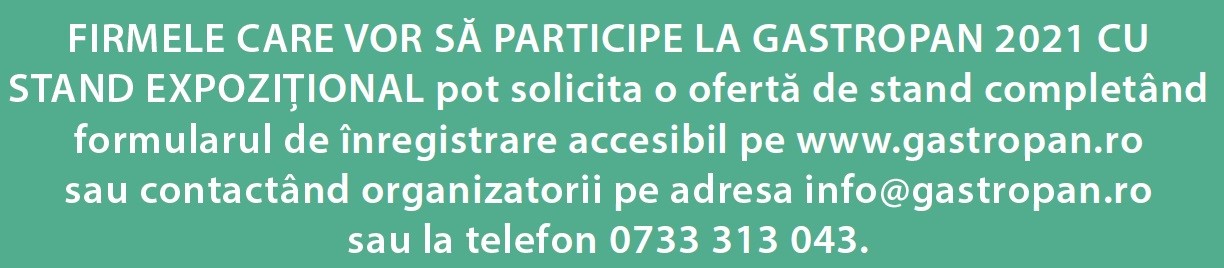 Doar câteva săptămâni ne desparte de startul expoziției GastroPan, pregătirile sunt în plină desfășurare, nu doar în cadrul echipei de organizatori ci și în cadrul companiilor expozante. Rezervările pentru evenimentul anului se fac într-un ritm alert, însă furnizorii încă mai au posibilitatea de a participa cu un stand expozițional. Interesul crescut al firmelor din România și străinătate pentru participarea la GastroPan – atât a celor care deja au mai participat, dar și a unor furnizori noi – denotă clar că în contextul în care pandemia de coronavirus a marcat profund domeniile de activitate vizate de GastroPan, industria are nevoie de un eveniment profesional care va reuni cererea cu oferta. Pentru cea de-a 12-a ediție sunt înscriși numeroși furnizori, atât expozanți care au mai participat la expoziție cât și firme noi.